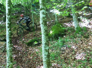 Le soleil est au rendez vous, le parcours est magnifique avec essentiellement des single tracks fraîchement ouverts par l'équipe organisatrice, des ravitaillements conséquents (le gateau creusois est délicieux!!), dont celui du 30ème kms dans le Parc aux Loups.Je redoutais la difficulté technique mais je suis dans un "grand" jour et j'en épate même Tibo...